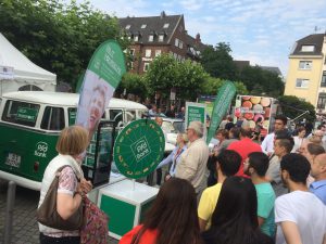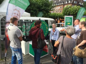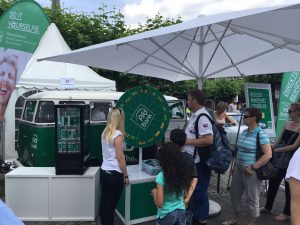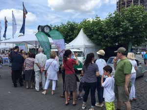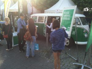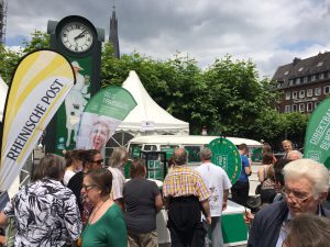 Bei wunderbarem Sommerwetter kamen am vergangenen Wochenende über 100.000 Besucher zum Düsseldorfer Frankreichfest. Viele davon machten auch einen Stopp an unserem Stand. Am Glücksrad konnten die Besucher neben vielen kleinen Überraschungen eine Rundfahrt im Citroen DS gewinnen – einmal stündlich ging es dann mit der „Göttin“ durch die Düsseldorfer City. Außerdem hieß es „hinsetzen, faxen machen und Foto mitnehmen“ in unserer Fotobox. Dafür haben wir extra unseren VW Bulli für das Frankreichfest umgerüstet. Hier sind ein paar tolle Eindrücke vom Wochenende.