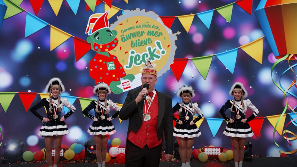 Hierfür zeichneten die Bands und Kabarettisten nacheinander unter Einhaltung aller Hygiene- und Schutzmaßnahmen ihre Karneval-Acts in einem Studio auf. Das Ergebnis war schließlich ein buntes und unterhaltsames Programm mit Markus Krebs, den Bläck Fööss, Ingrid Kühne, den Swinging Funfares, Volker Weininger, der Rhythmussportgruppe und Brings.
