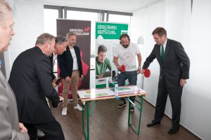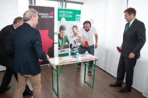 Neben vielen anderen Partnern, sind auch die Düsseldorfer Jonges als Sponsor der Aktion vertreten. Baas Wolfgang Rolshoven, „ die Düsseldorfer Jonges kooperieren schon seit langem mit Borussia Düsseldorf im Projekt „Tischwinkel“ und deswegen haben wir uns sofort angesprochen gefühlt und unterstützen diese Aktion. Wir haben direkt unsere Jonges aufgerufen, zahlreich am Wochenende mit zu spielen, um den Weltrekord zu brechen.“